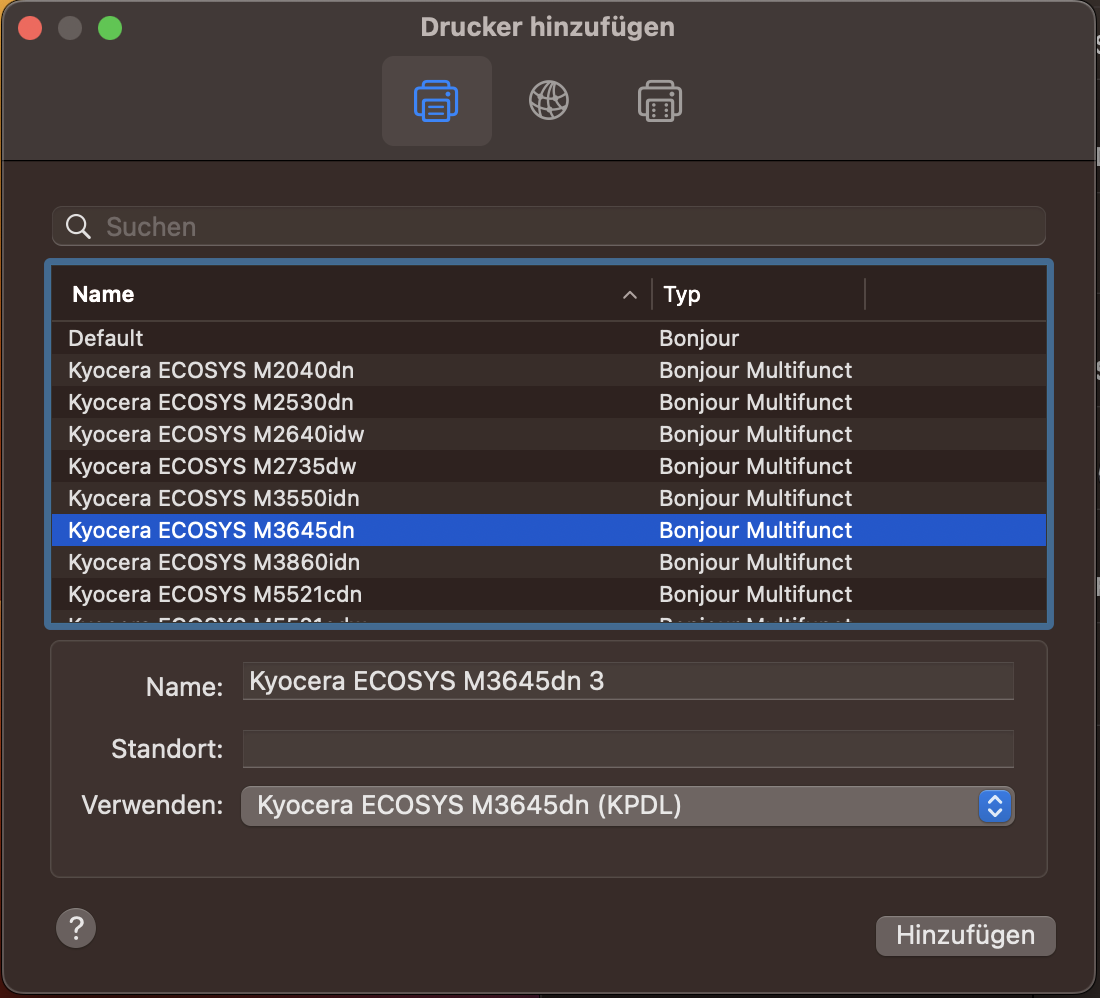 Add printer as “Bonjour Multifunction” device